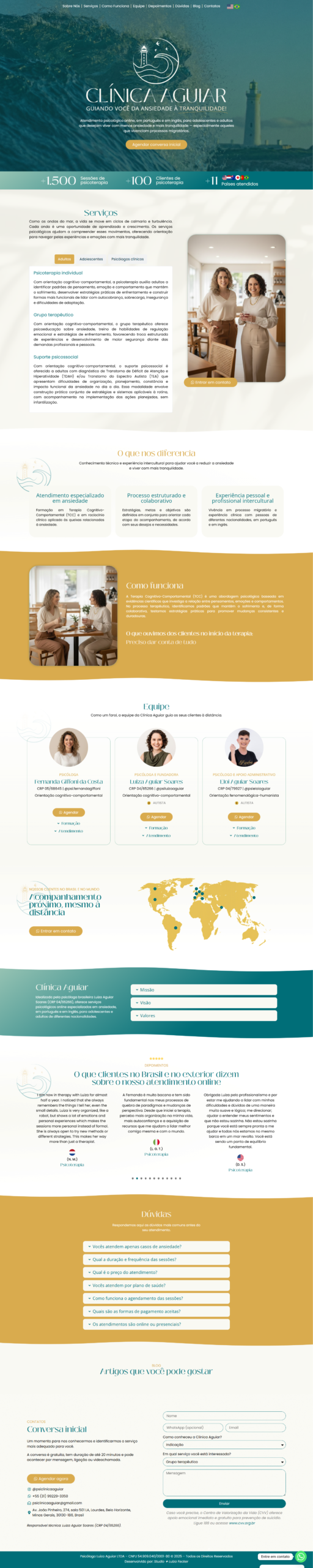 O projeto da Clínica Luiza Aguiar foi desenvolvido para acolher pessoas em momentos de vulnerabilidade emocional, com foco especial em brasileiros que vivem no exterior. Cada detalhe do site foi pensado para transmitir calma, confiança e pertencimento, desde a estética suave até a organização clara das informações.