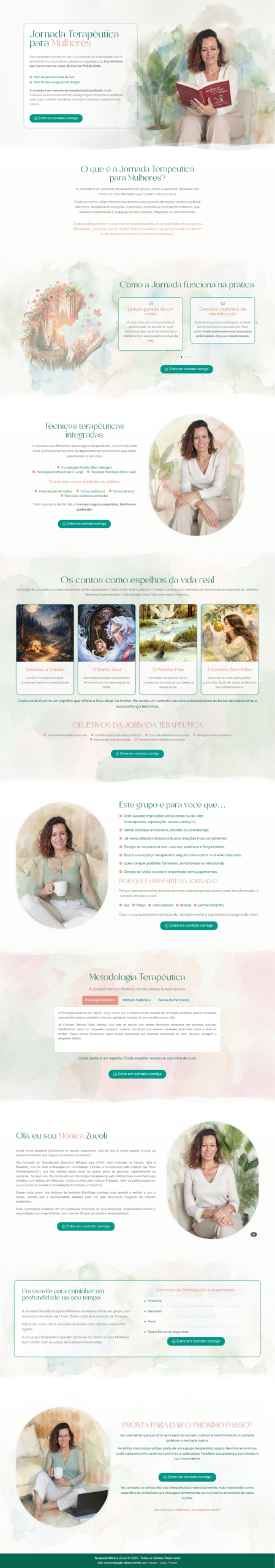 A landing page desenvolvida para a Mônica Zocoli aprofunda ainda mais sua presença digital ao apresentar uma proposta terapêutica específica: a jornada para mulheres. Diferente do site institucional, esta página foi pensada como uma experiência imersiva e direcionada, conduzindo a visitante por um caminho de identificação, entendimento e decisão.